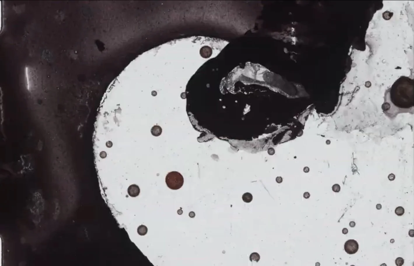 Acrylic and stickers on 16mm single-perf, clear film leader